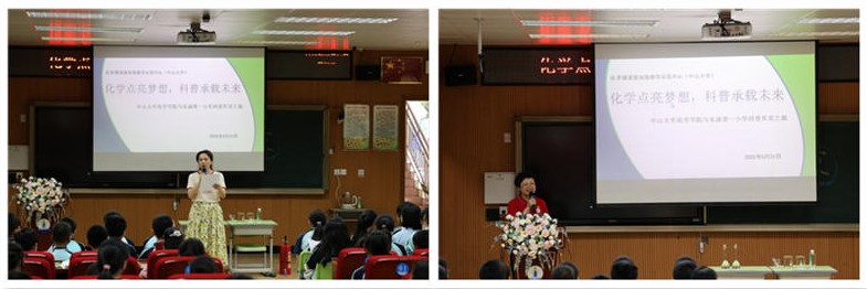 在科普活动正式拉开帷幕之际,东涌第一小学高贞凤副校长发表了热情洋溢的欢迎辞,勉励六年级的同学们抓住这一宝贵的学习机会,扎实学习科学知识。随后,中心党支部书记赖瑢老师简要介绍了中山大学化学学院及科普教育工作的开展情况,并表示希望通过高校与小学的携手合作,为孩子们的心田播撒下科学的种子,以科学的力量助力他们茁壮成长,在科学的道路上迈出坚实的第一步。