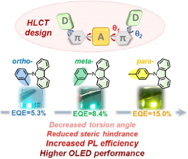 池振国教授研究团队通过调节电子给体和受体基团的扭曲角构建HLCT分子用于高效OLED器件的制备