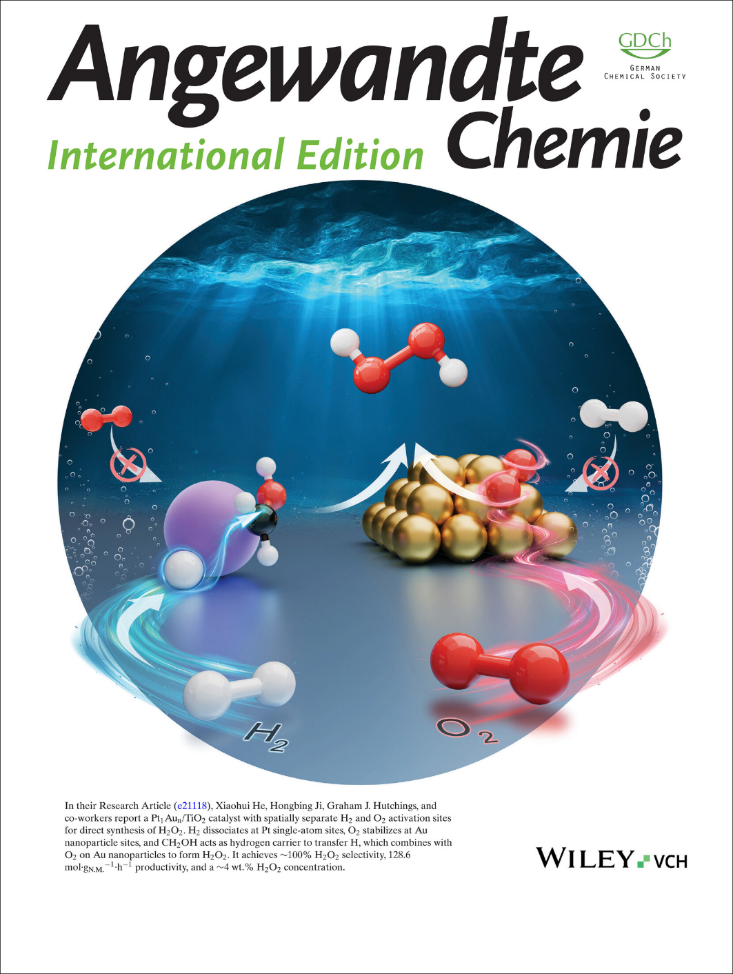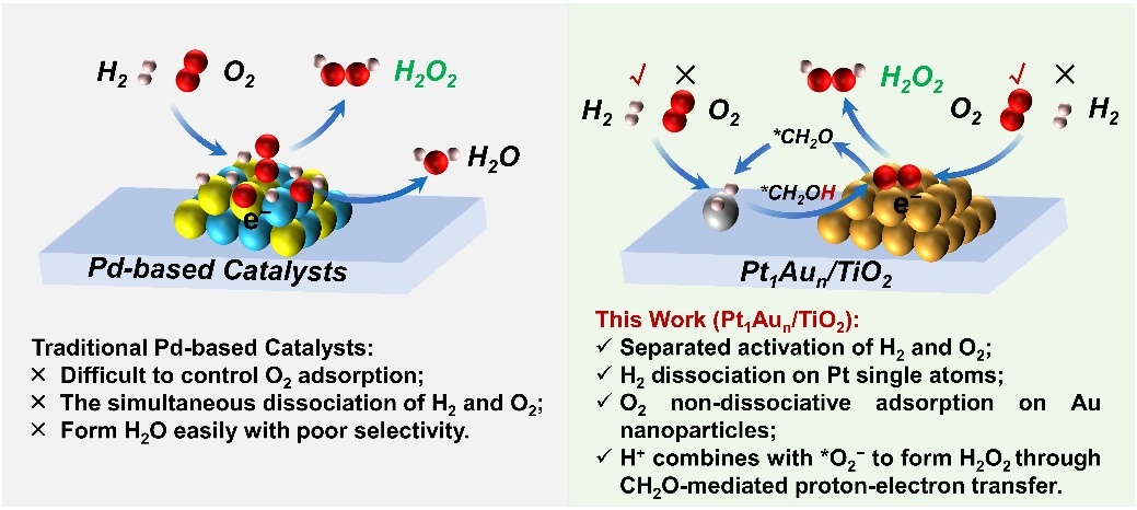 何晓辉教授团队发表Angew内封面文章:铂-金催化剂上空间分离的氢和氧活化位点实现高效直接合成过氧化氢